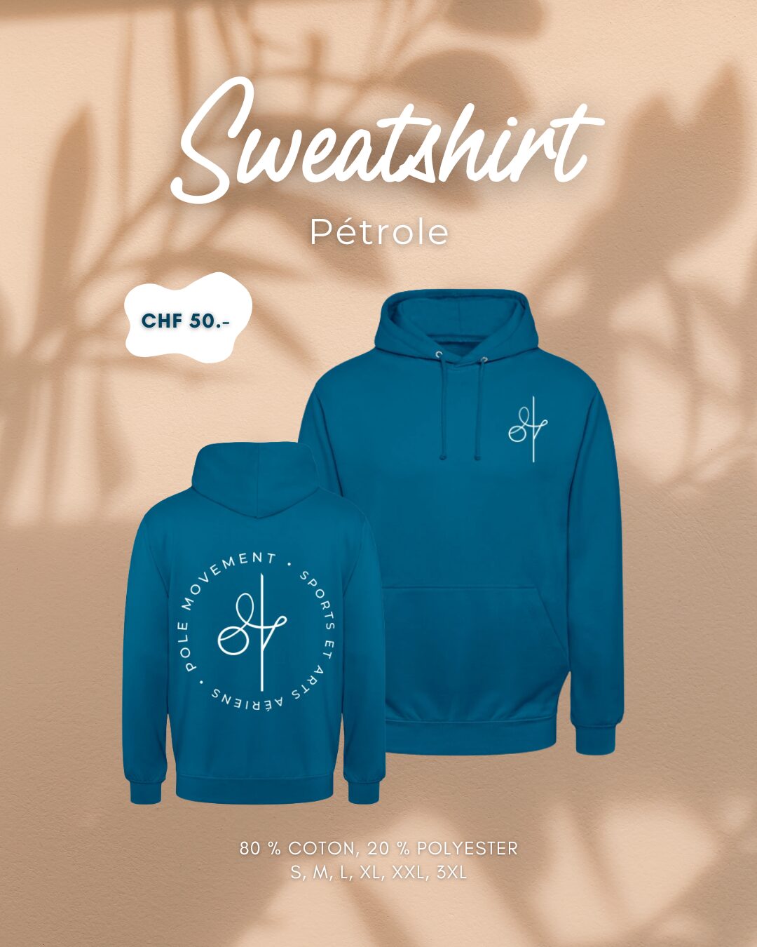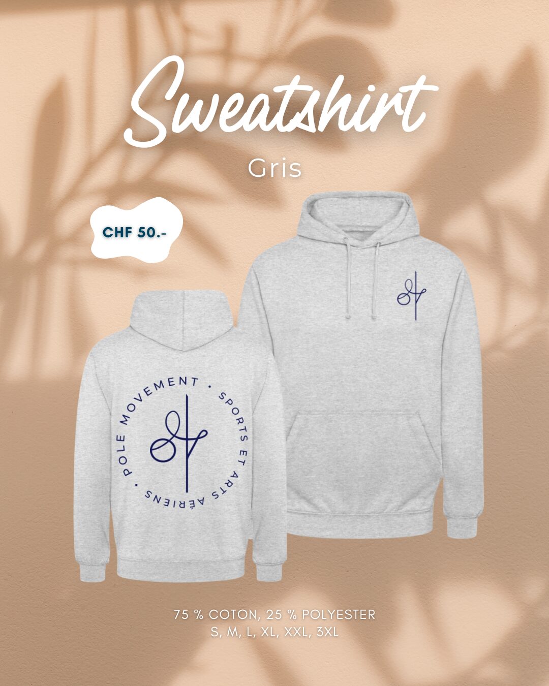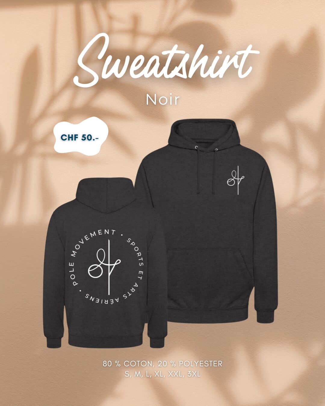 Écris un email à communication@polemovement.ch en indiquant la couleur et taille qu’il te faut !